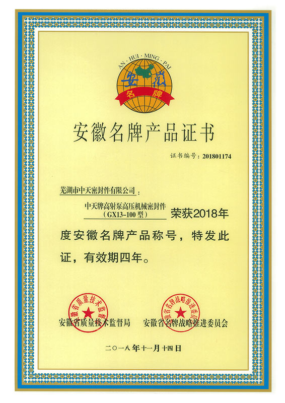 安徽名牌產品證書